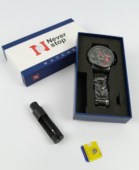Never Stop Black Red Wheel Men’s Watch